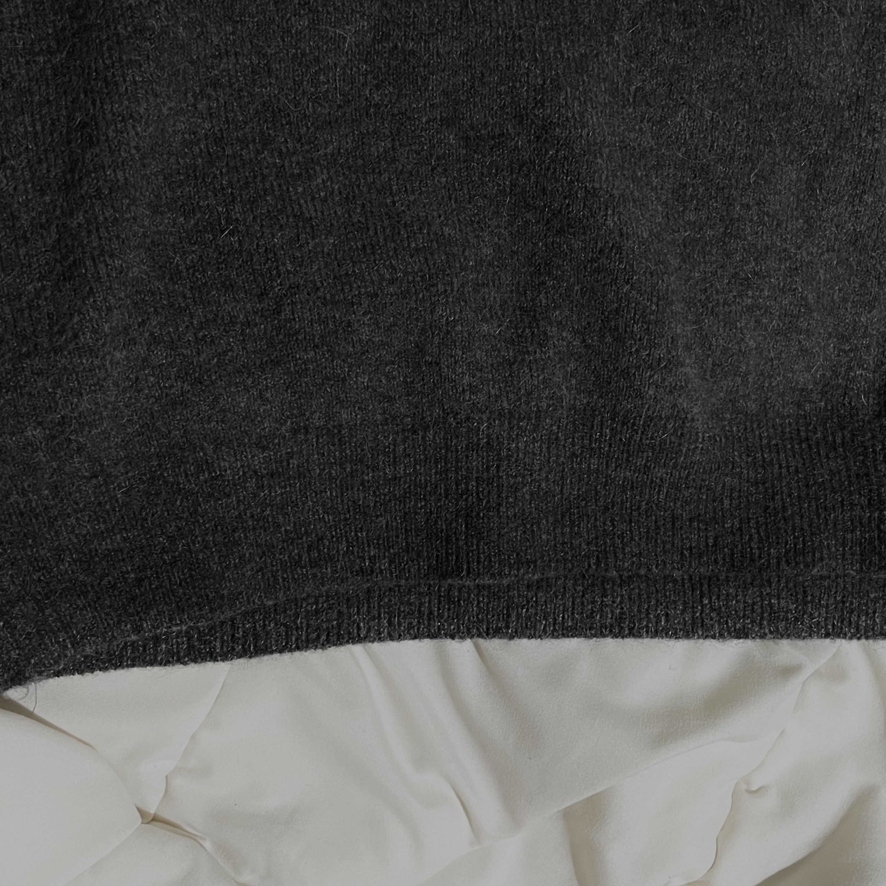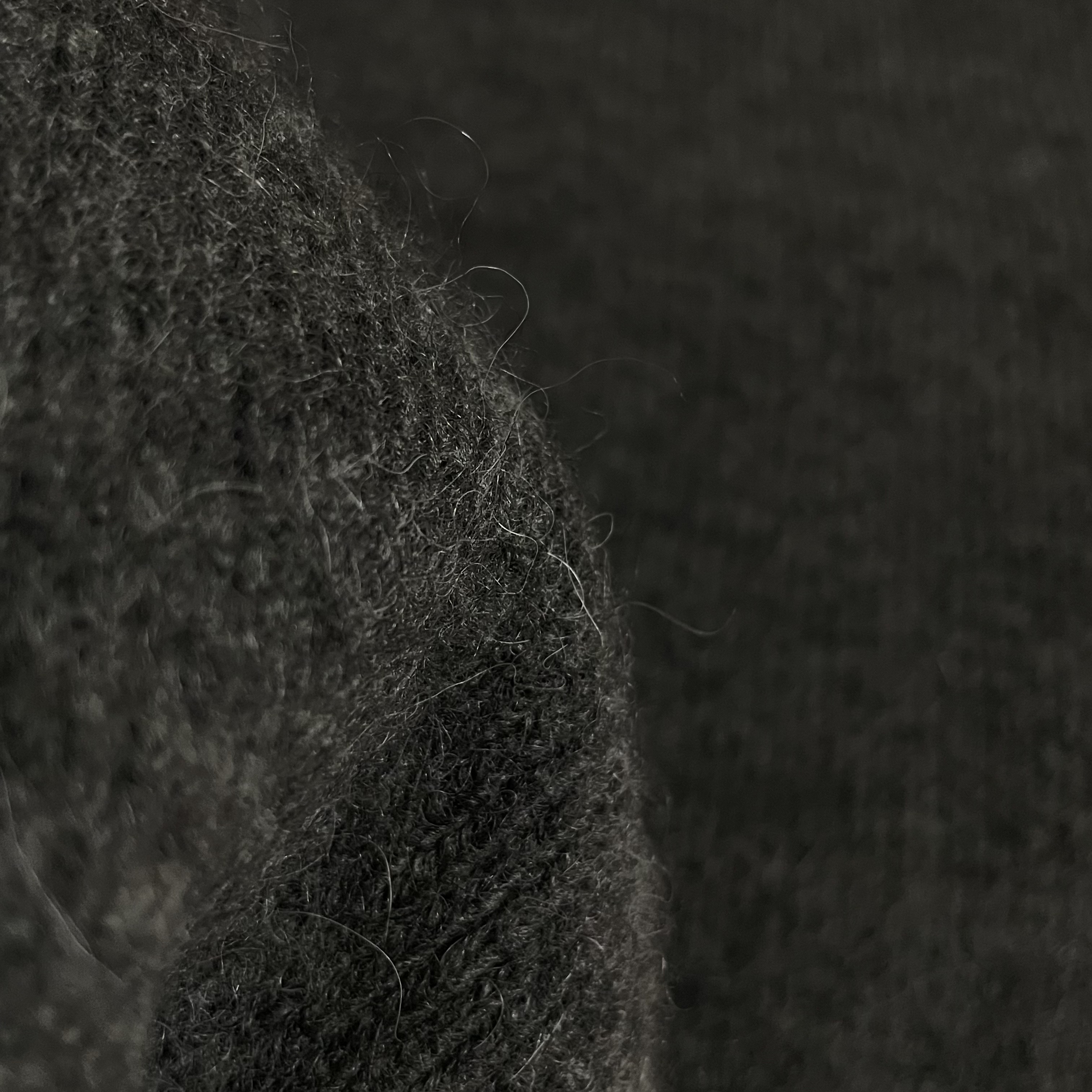 첫 번째 사진은 팔부분의 소재이고, 두 번째 사진이 몸판 부분의 소재입니다. 보시다시피 몸판 부분의 털들이 한 올 한올 서있으면서 부드러운 느낌은 아닙니다. 정확히 말하면, 손으로 만졌을 때는 부드러운데, 맨 살에 입었을 때는 굉장히 따갑습니다. 몸판이 굉장히 따가워서 단품으로는 착용이 힘듭니다. 티셔츠나 셔츠 등으로 한 겹을 더 입어주어야 합니다.